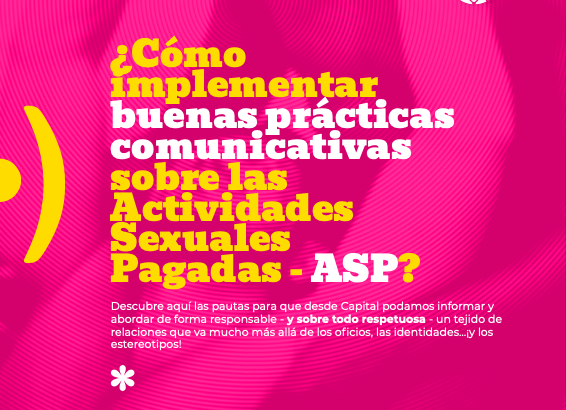 En este documento los servidores y colaboradores de Capital podrán conocer las pautas para informar y abordar de forma responsable – y sobre todo respetuosa – un tejido de relaciones que va mucho más allá de los oficios, las identidades y los estereotipos de las personas que ofrecen Actividades Sexuales Pagadas – ASP.