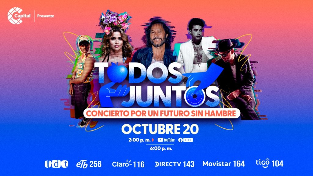 Este domingo 20 de octubre, nuestro canal transmitirá en vivo desde el Movistar Arena de Bogotá, el concierto “Todos Juntos: Un Futuro Sin Hambre”, un evento benéfico que busca recaudar fondos para combatir la desnutrición infantil en Colombia. ¡Te contamos!