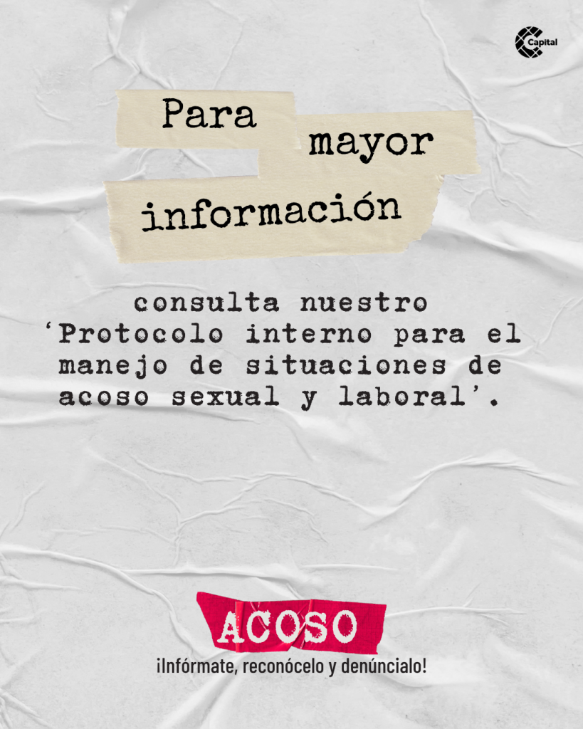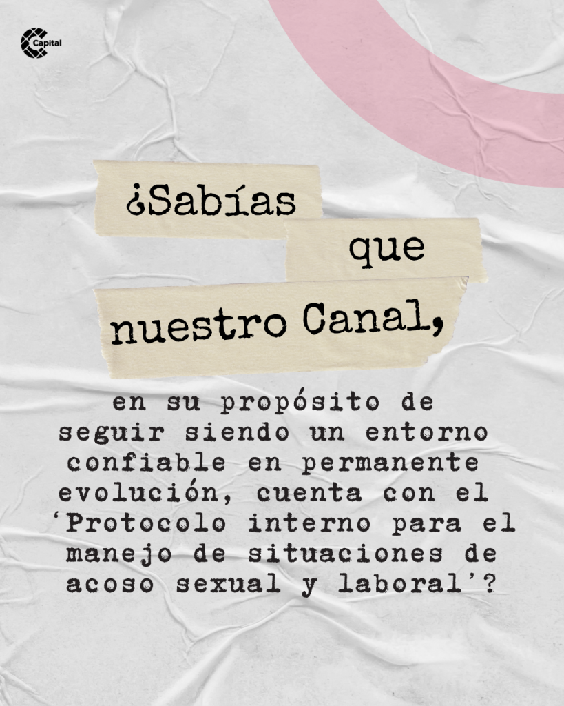Te invitamos a conocer más sobre el Protocolo interno para el manejo de situaciones de acoso sexual y laboral de nuestro Canal y sobre la diferencia entre acoso laboral y acoso sexual laboral. Desliza hacia abajo e infórmate.