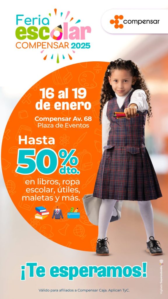 Por ser afiliado a Compensar Caja aprovecha hasta 50% de descuento en referencias seleccionadas de libros, ropa escolar, útiles escolares, maletas, loncheras y mucho más.