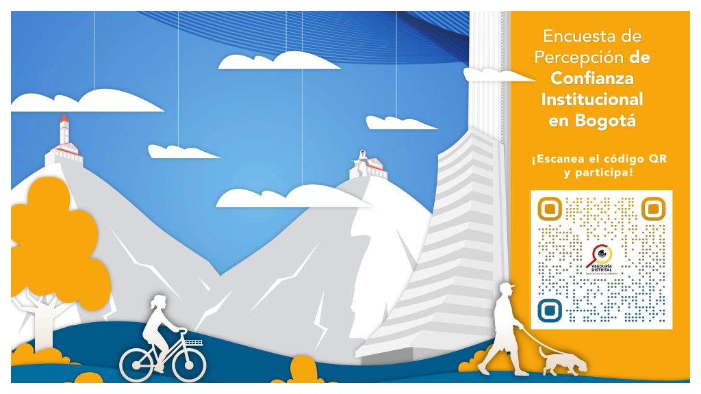 La Veeduría Distrital te invita a participar en la ‘Encuesta de Percepción de Confianza Institucional en Bogotá’, con la cual aportarás tu percepción acerca del nivel de confianza en las instituciones distritales, en el marco del actual Plan Distrital de Desarrollo 2024-2027 ‘Bogotá Camina Segura’.