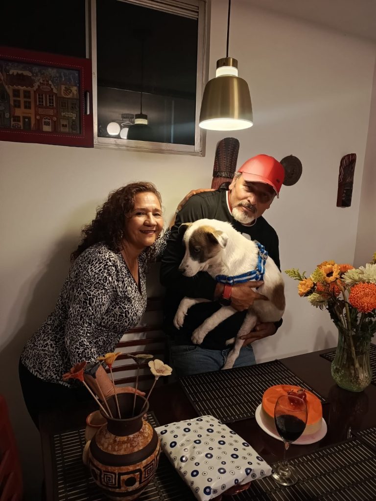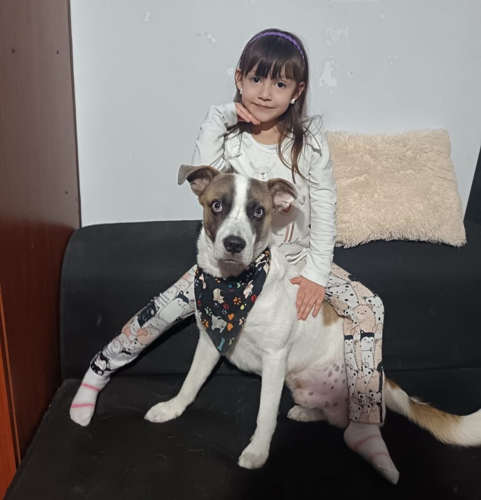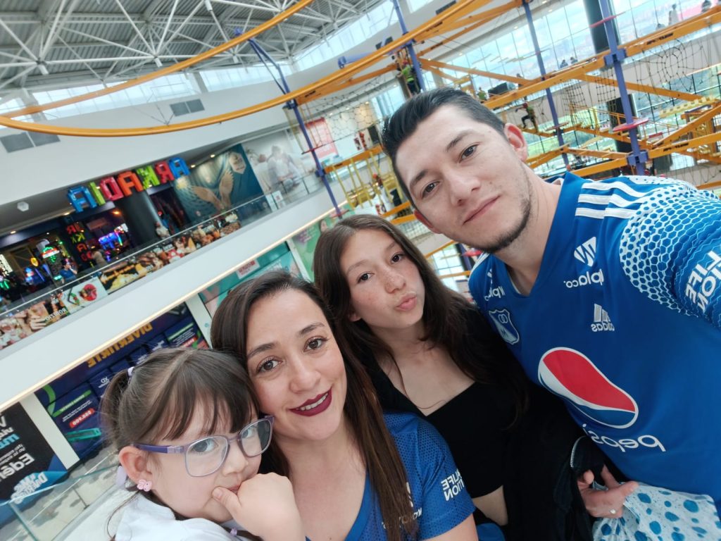 “La mayor de mis hijas se llama Emily, tiene 13 años y es deportista premiada a nivel nacional como parte del equipo de porras de Bogotá y la menor es Salomé, tiene cinco años, y también le gustan las prácticas de porrismo. El más reciente integrante de la familia es Bruno, mi perro de 3 patas que molesta igual que todos y a quien rescatamos hace como seis meses”.