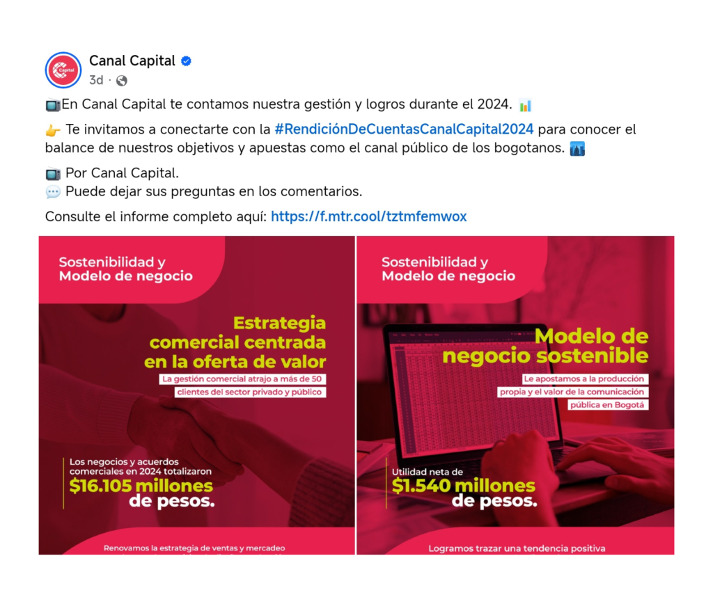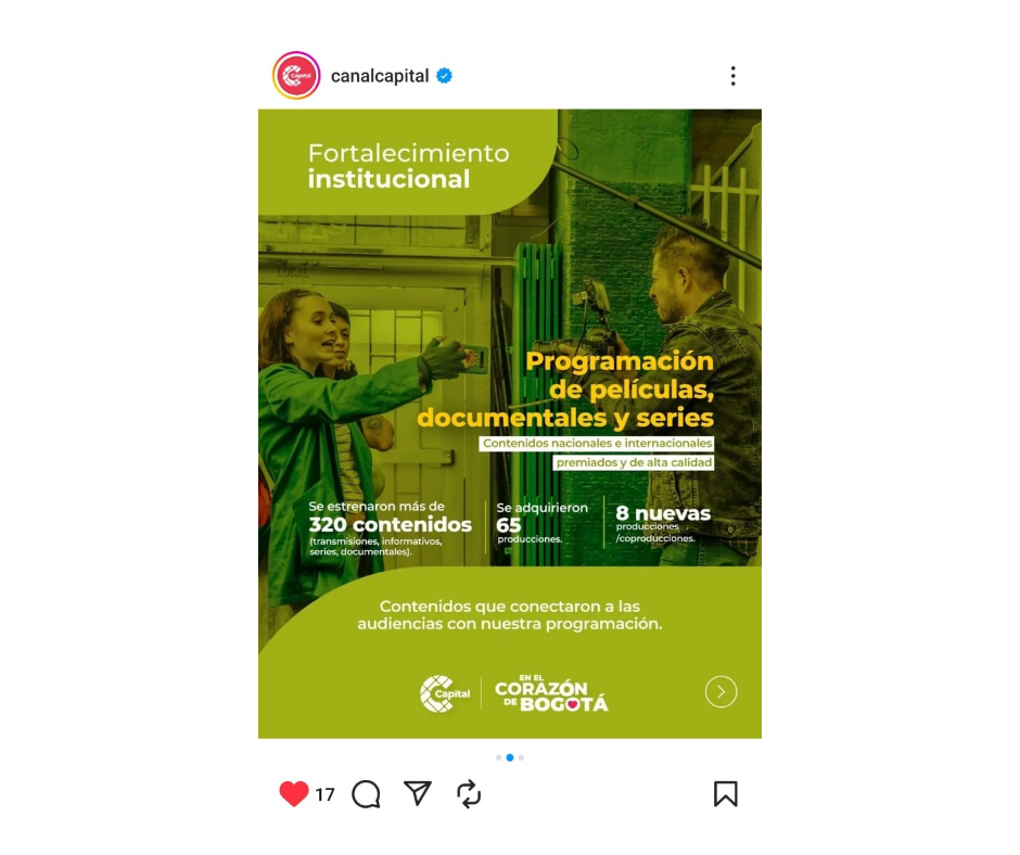 Además, como parte de esta estrategia de Rendición de cuentas que busca brindarle información clara y oportuna a la ciudadanía para generar confianza y permitir un control social sobre las actuaciones de las entidades públicas, nuestro Canal tiene una invitación activa para que a través de las redes sociales del canal, puedan interactuar, enterarse de los logros más destacados que obtuvimos el año anterior y dejar comentarios sobre esa gestión que se realizó gracias al trabajo de todo el equipo Capital.