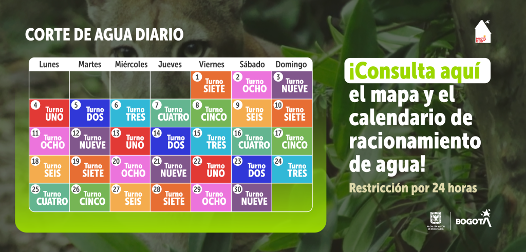 Teniendo en cuenta la coyuntura que vivimos actualmente en Bogotá con el racionamiento diario programado de acuerdo con los nueve turnos establecidos, te contamos las fechas de racionamiento que tendremos en nuestras dos sedes.